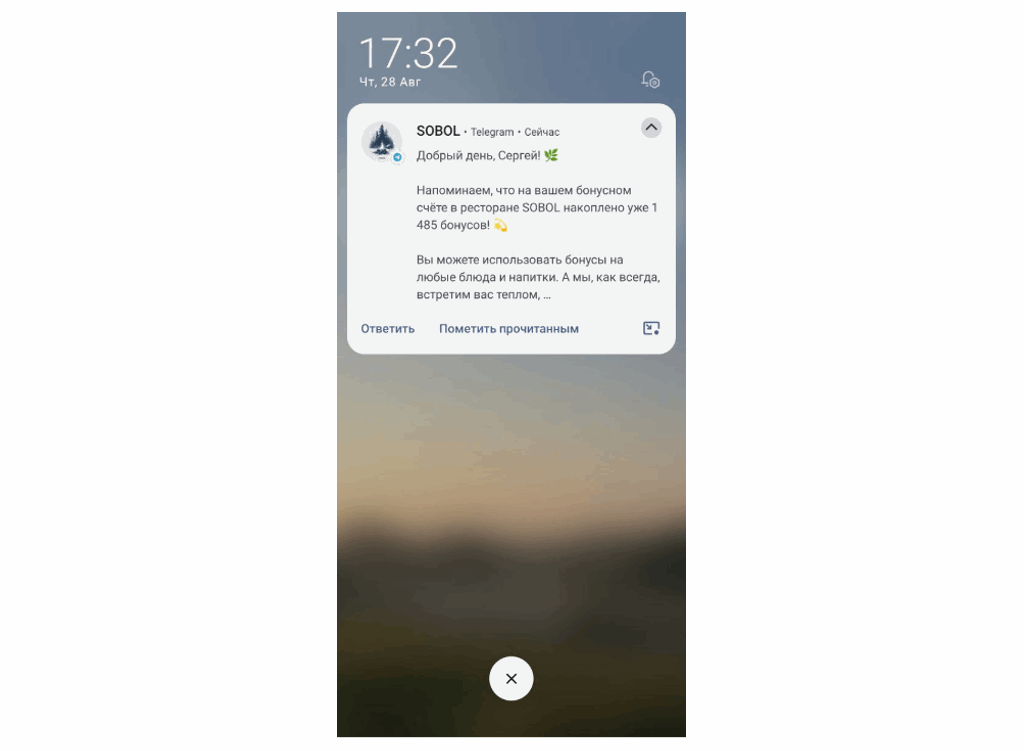 - Push. Это уведомление от бота, которое приходит вместе с сообщением пользователю даже при закрытом приложении.