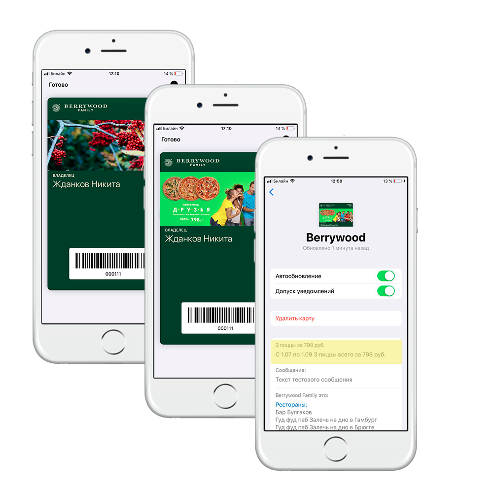 Создание кабинета для клиента на вашем сайте или в wallet-карте. Информирование о балансе: на сайте, в чеке, в wallet, в транзакционном сообщении по sms/email/push.